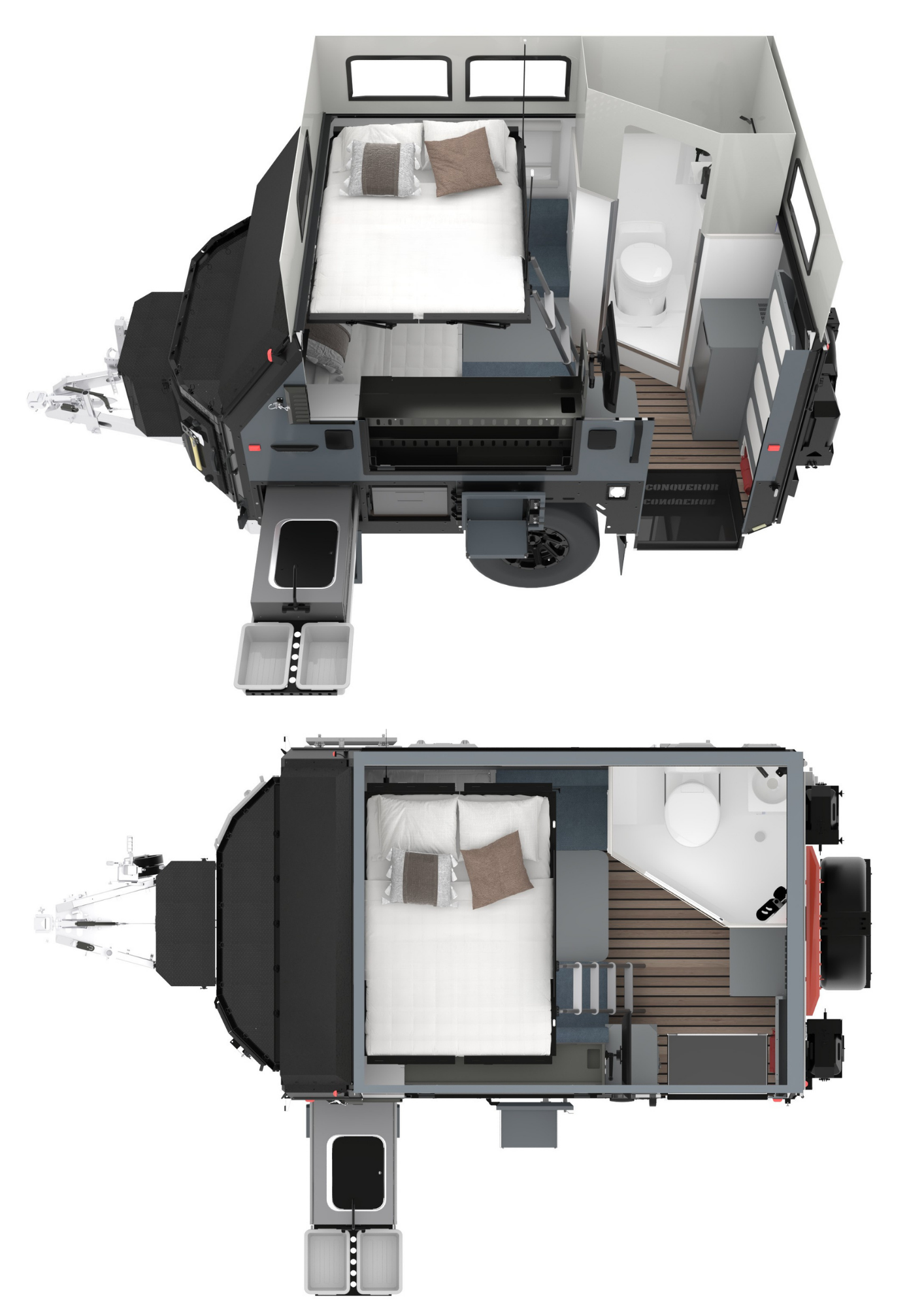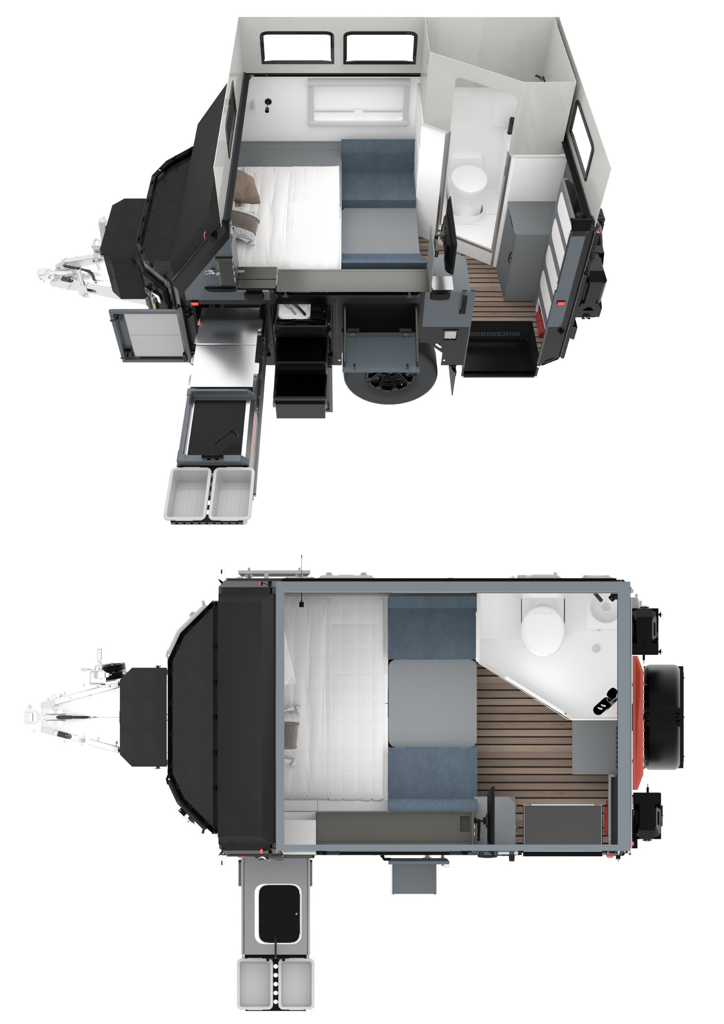 Premium features including a 5-layer aluminium composite construction with exoskeleton frame, independent airbag suspension with 140mm of adjustable travel, high-flow dust suppression system, lithium battery power with Redarc power management and Conqueror's cleverly purpose-built storage – all standard. The UEV-470 is ready for anything. Best of all, it sets up in minutes, making it the perfect family escape machine for off-grid exploration and unforgettable adventures.